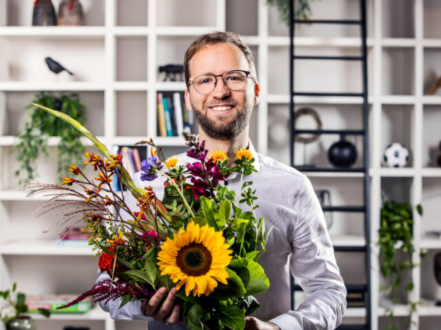 Gino’s werkdagen starten om 5 uur. “Maar ik zou niet later willen beginnen,” zegt Gino resoluut. “Die vroege start heeft voordelen: op rustige dagen ben ik al om 12 uur klaar, op drukke dagen rond 2 of 3 uur.” Ook de drukke periodes maken het werk leuk. Rond dagen als Valentijn werken we extra hard met elkaar. “Als team weten we gelukkig wat prioriteit heeft. Boeketten moeten vaak eerst gedaan worden, zodat die op tijd naar de klanten kunnen. Zo gaan we door totdat de laatste kar is aangemeld.”