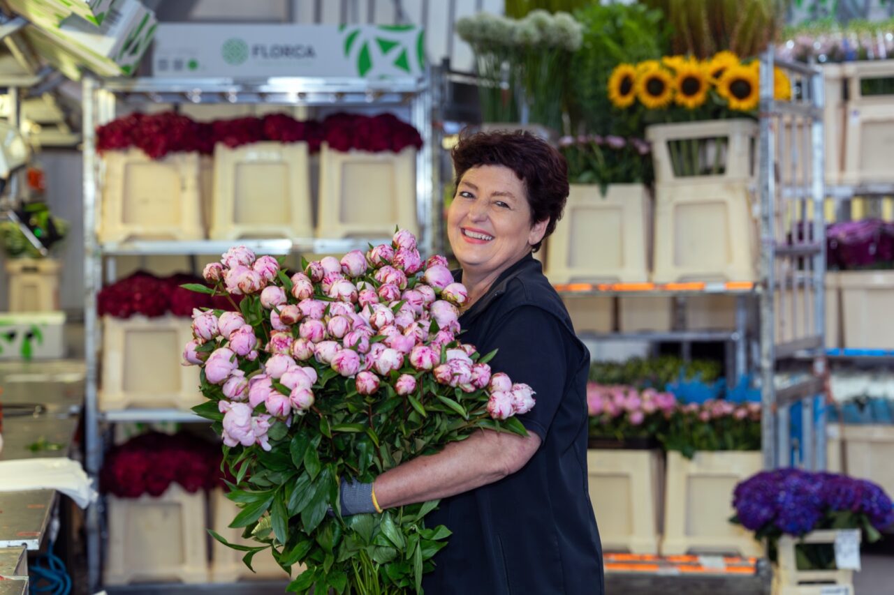 Samen met het team zorgt Laura ervoor dat alle bloemen correct worden ingepakt voor de (lucht)vracht. “De bloemen komen binnen bij inslag en worden daarna per klant op karren gezet. Op het inpakscherm zien we precies wat de klant wil – welk type doos en wel of geen plastic hoes – en hoe we de bloemen moeten verwerken. Inmiddels ken ik de meeste klantwensen uit mijn hoofd.”